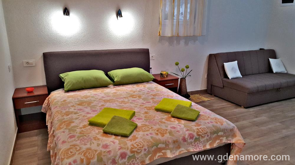 Oddam garsonjero z dvema zakonskima posteljama. Apartma se nahaja v hiši v mirnem delu naselja Bijela, Boka Kotorska.Apartma ima popolnoma opremljeno kuhinjo, kopalnico, klimo, brezžični internet in veliko teraso. Parkirišče na dvorišču je zagotovljeno.